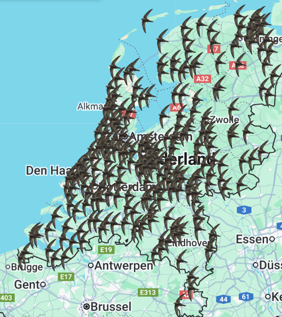 Hier staat alle projectinfo met bovenaan de kaart: https://gierzwaluw.website/Projecten.html En hier vindt je ze op Google-Maps: Gierzwaluwkasten NL op Google-Maps.