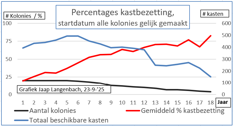 kasten in een kolonie afgezet tegen de ouderdom van het project: