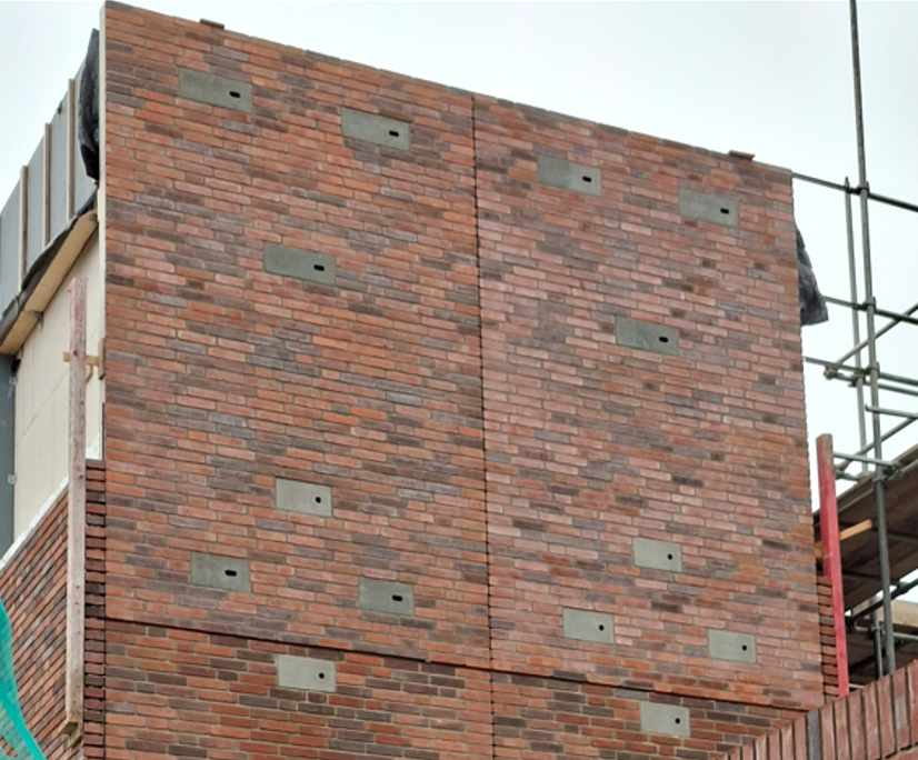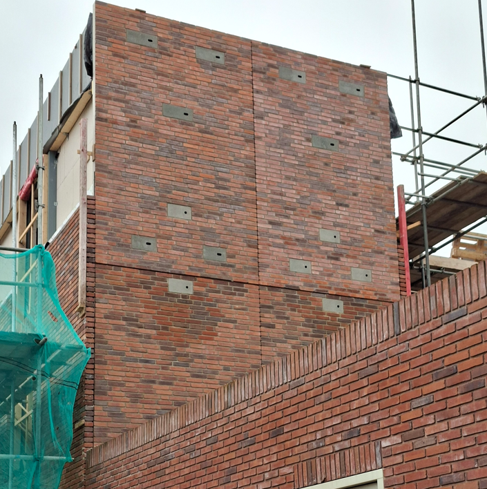 onzichtbaar ingemetselde neststenen in de bovengevel. Voorbeeld van een van