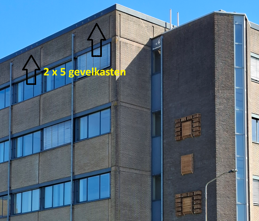stadsvogels 15 gierzwaluwnestkasten aan een pand van woningcorporatie Delta