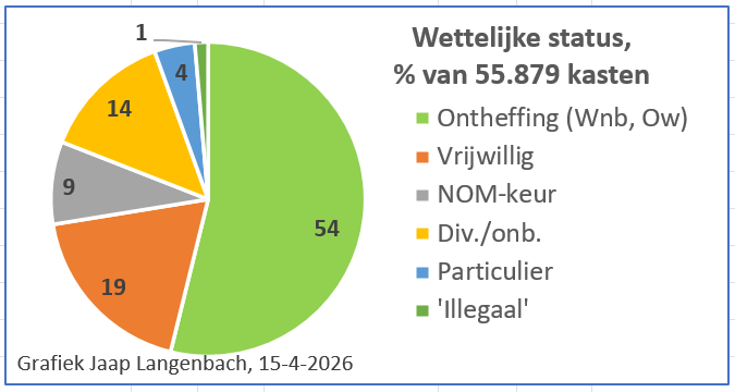 Onbekend is welk deel van die 3.183 kasten in het kader van SMP-beleid is geplaatst en welk deel door vrijwillige acties van bouwers en bewoners, door de vrijwilligersgroep of in het kader van ontheffingen Wnb voor "losse" projecten. In het kader van de SMP-regeling werden van 2021 t/m oktober 2024 totaal 930 kasten geplaatst. Die jaarlijkse administratie (populatie en beschikbare / bezette voorzieningen) wordt door de provincie apart verlangd voor alle 28 wijken ("salderingsgebieden"), maar kreeg ik nog niet boven water. Wat een administratie! Zou de gierzwaluw er ook iets aan hebben?